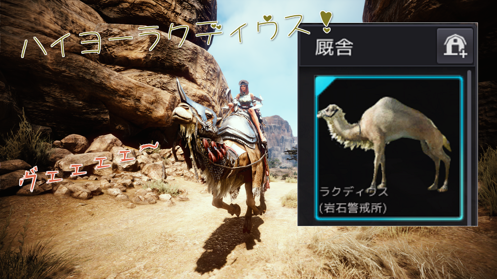 乗り慣れないラクダで走り慣れない経路を走らせてる時は、なんか移動放置するのも気が引けるし。